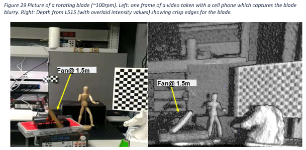 - 스테레오 카메라와 같은 다른 깊이 감지 방법과 비교할 때, L515는 각 픽셀의 깊이가 직접 측정되기 때문에 더 나은 에지 해상도를 가짐