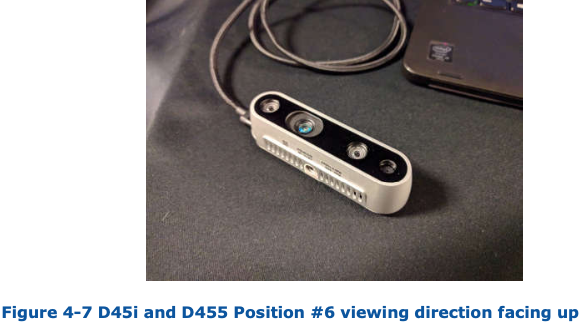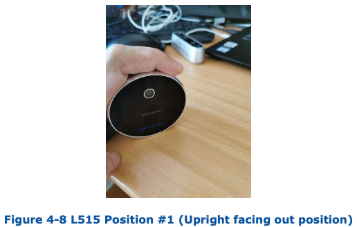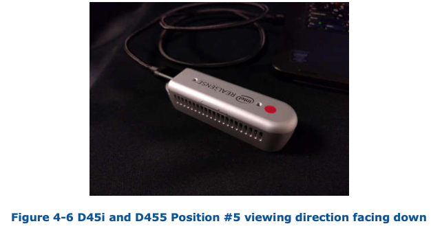 - 리얼센스 로고가 하늘을 향하고, 렌즈표면이 지면을 향하게 둔다.(3~4초 대기)